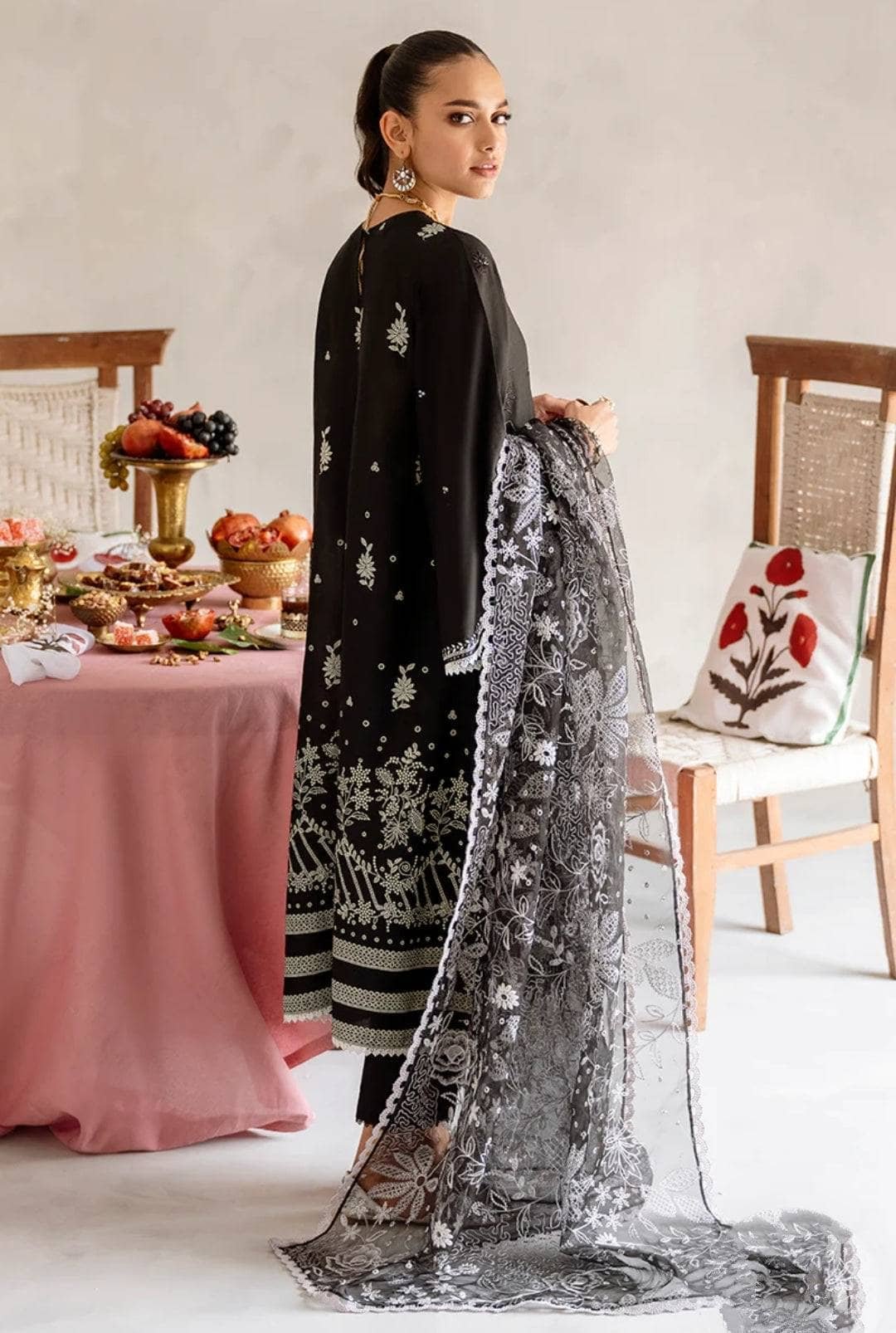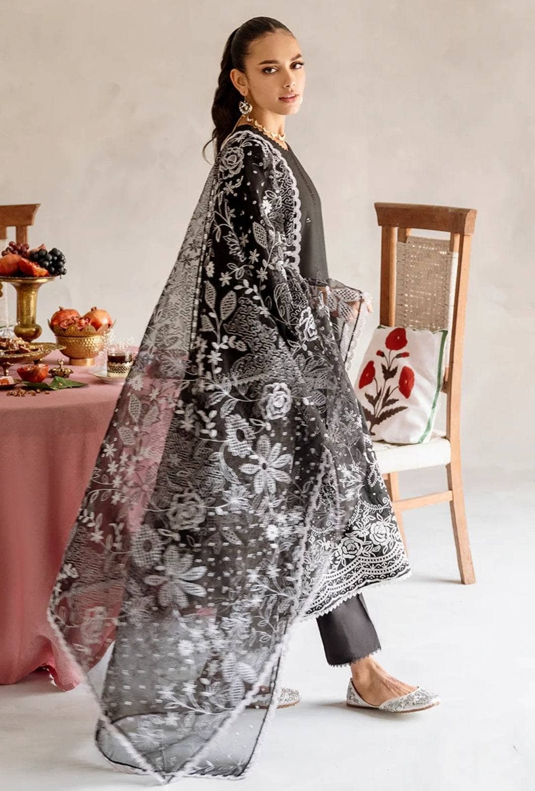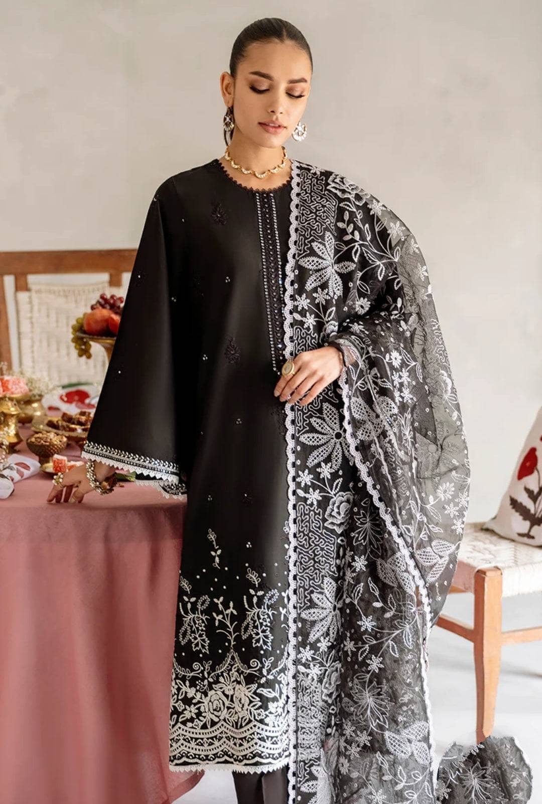- Luxury Embroidered Pure Bambre Chiffon Dupatta 2.5m