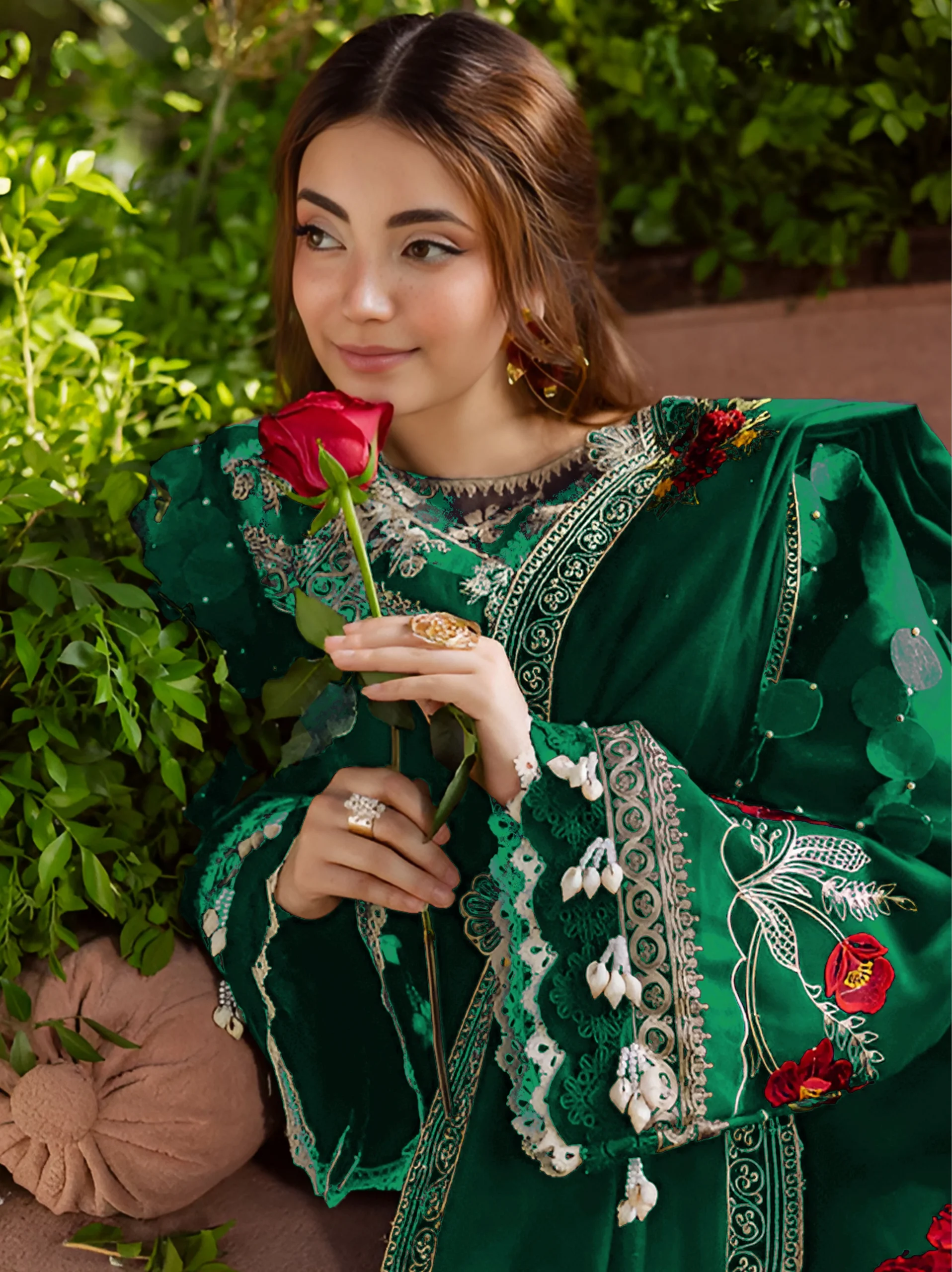 - Handmade Embroidered Neckline