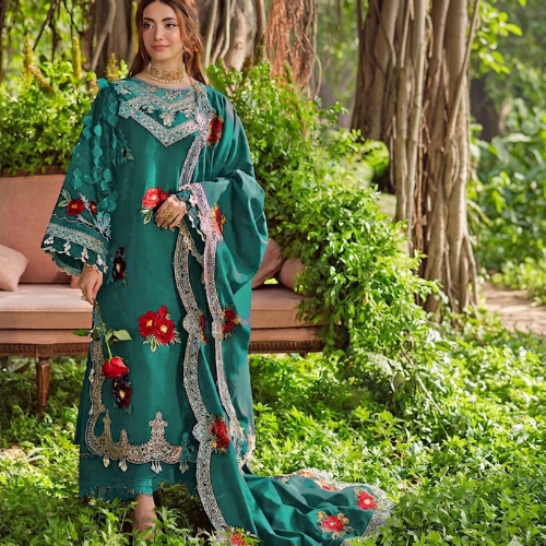 - Unstitched Fancy Embroidered Shirt Bac