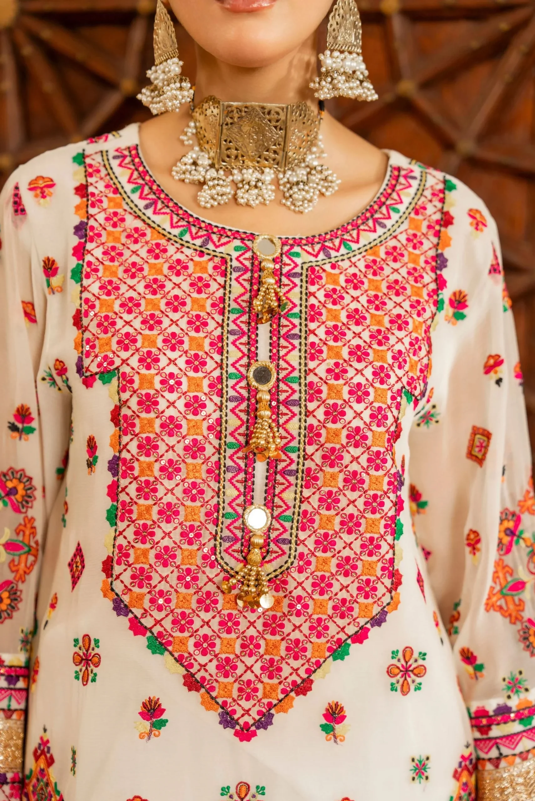 - Unstitched Fancy Embroidered Shirt Back