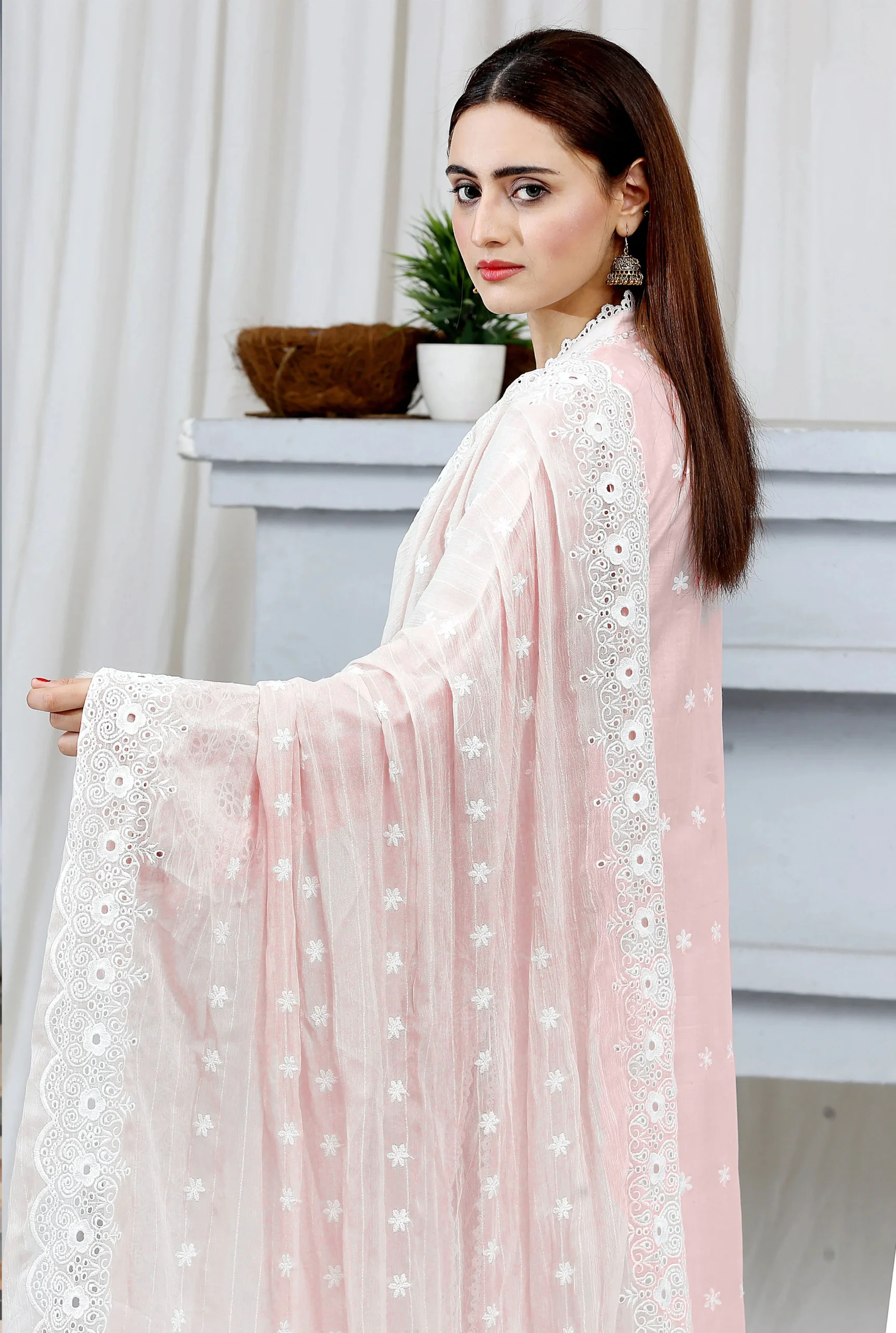 - Unstiched Luxury Embroidered Pure Bambre Chiffon Dupatta 2.5m